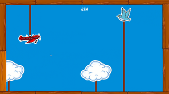 The plane moves forward automatically — your only task is to guide it up and down, avoid obstacles like birds and survive as long as possible.